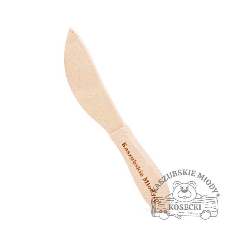 Ekologiczny drewniany nożyk do miodu wykonany z drewna bukowego. Ma około 19 cm długości. Nożyk ten świetnie sprawdzi się do rozsmarowywania miodu po kromce chleba.