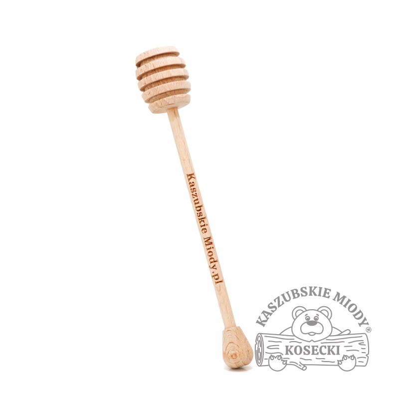 Produkt ten wykonany z drewna bukowego, nabierak składa się z trzonka, oraz główki z rowkami. Czerpak drewniany ma około 18 cm długości, przez co ułatwia wybieranie miodu z samego dna słoika. Jego specyficzna konstrukcja sprawia, że płynny miód łatwo nabrać (do miodów skrystalizowanych zalecamy zakup łyżki drewnianej), a następnie możemy kontrolować spływanie miodu do herbaty czy na chleb. Jego specjalne wyżłobienia w strukturze pozwalają na dozowanie potrzebnej ilości miodu.