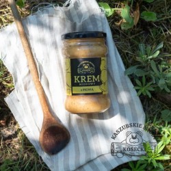 Krem miodowy to połączenie delikatnego miodu wielokwiatowego wiosennego z pigwą liofilizowaną. Składniki te są ze sobą łączone w odpowiednich ilościach, a następnie mieszane w kremownicy aż do uzyskania jednolitej masy.