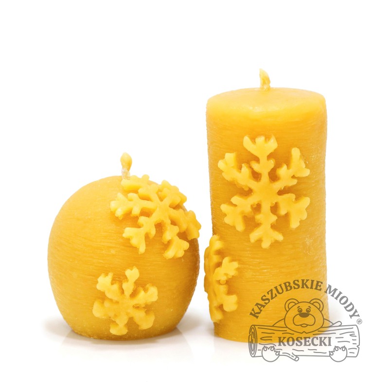 Zestaw dwóch świec Bożonarodzeniowych z wosku pszczelego.